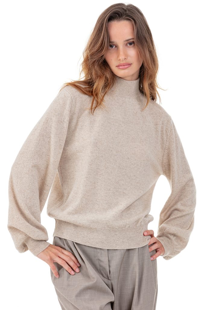 Feminine and refined, the PIA women’s jumper enchants with its sophisticated details. Knitted in 100% 2-ply cashmere, it combines lightness and softness. Balloon sleeves, inspired by the Deau model, and a funnel-style high collar, inspired by the Frédéric model, give it an elegant, modern allure. Its straight cut, slightly tightened at the hem, ensures balance and comfort.
