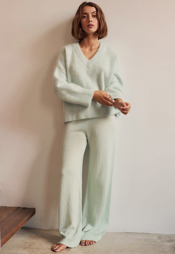 Combining comfort and elegance, the REESE trousers feature a straight cut with a slightly flared hem. Knitted in 100% cashmere, they offer incomparable softness and weightlessness for all-day wear.